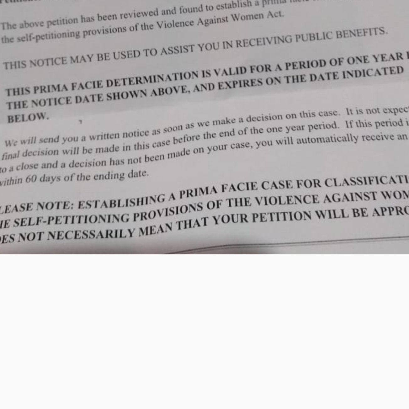 Without corroborating evidence (ie police reports), VAWA wouldnt even apply.