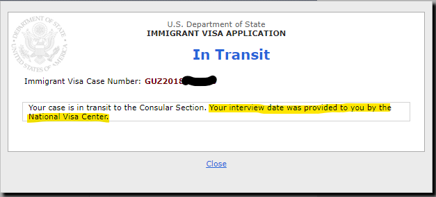 CEAC changed to "in transit" after a few hours of receiving email. Thank God! It's officially happening!! Got interview slot for Jan 17 since the whole calender was booked for Jan and Feb which is strange. Dec all slots available but we want to do interview after my fiance visits me for the second time in Christmas break. Lawyer says he'll look out if earlier slots in January open up.