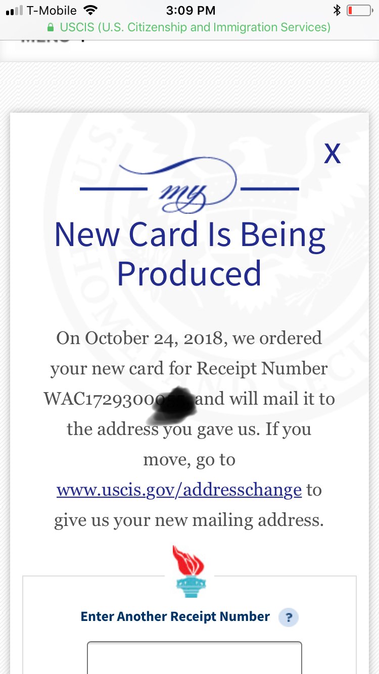 Guys! I was just checking the case tacker to see if they worked on any WAC17293 cases today, and noticed someone’s card was being produced. And guess what! It is MY number! Logged in online and tadaaaammmm!
