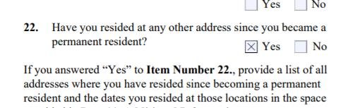 1. I stayed for 10 days at a location before moving. So in item 22, I will have to use "additional information. Please check if my way of writing is correct