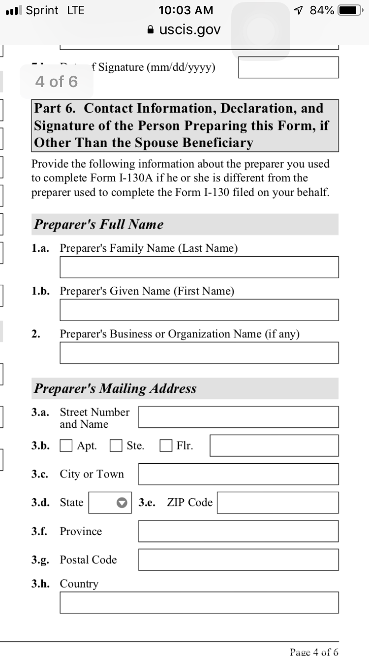 Looks like what you did was complete section 6 which  you don't do as the Petitioner. Just get his signature Or complete the I-130a the correct way and leave section 6 alone. That is for 3rd parties like attorneys, and other people filling this out on your or you husbands behalf.