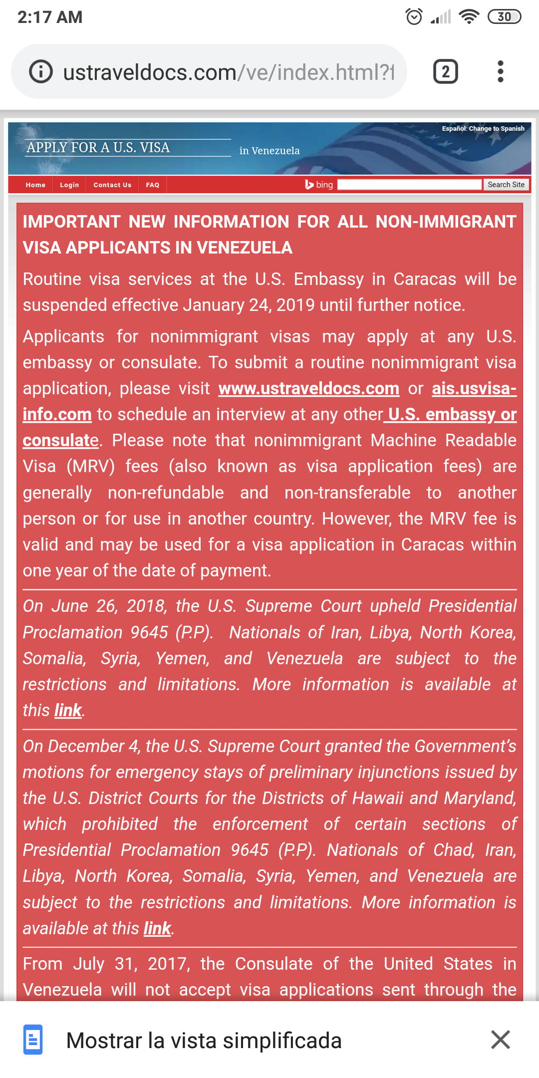 in other words Venezuela embassy is not longer an option. Have to do your visa through anotther USA embassy/consulate