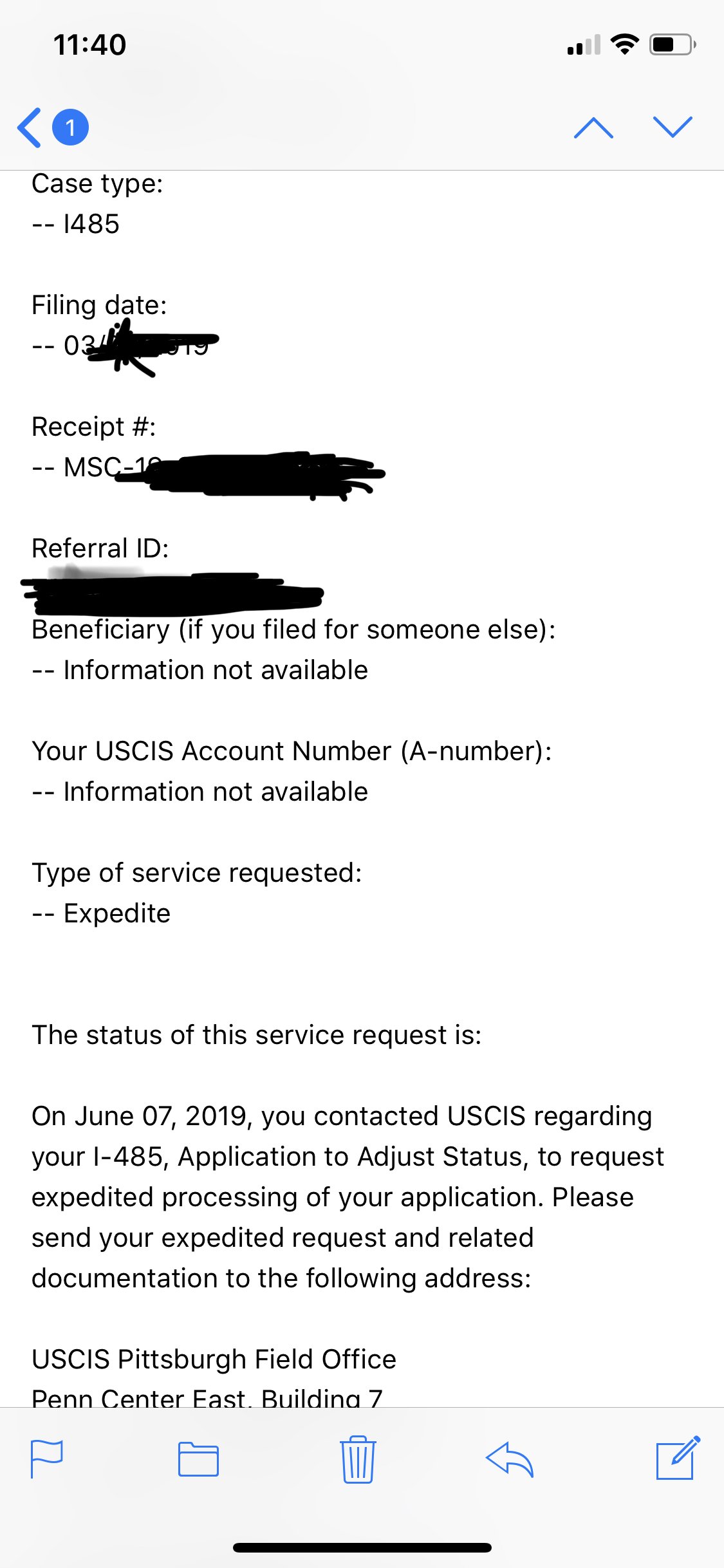Hello! Please Is there anything like expediting i485? I called USCIS last Friday about expediting my EAD under severe financial lost and the officer told me to explain what kind of financial loss I am experiencing, which I did and he took everything down. Today I got an email from my field office asking me to mail my explanation and documents to the field office. I noticed the expedite is being processed under my i485 ( I think I may have typed my i485 receipt notice when I called). My online status for my i485 changed to i485 expedite case assigned to an officer.