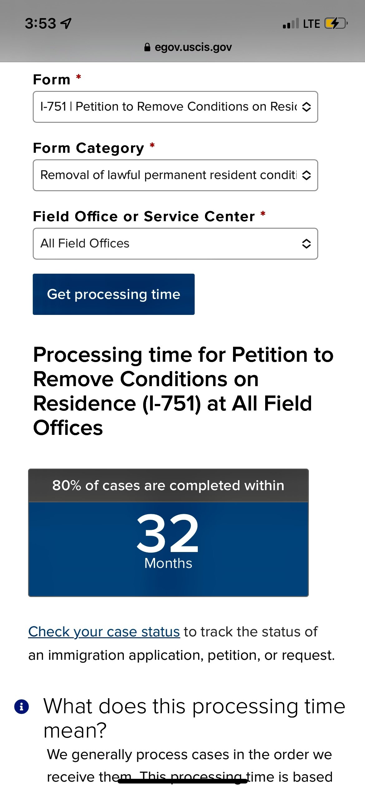 Mine is maine and says 15.5 months waiting, we turned ours in April 8, 2022 so that puts us at around June 2023. That’s only 6 months less then I-751 all service center processing time of 32 months, for us that would be in November 2023 since we turned in our I751 April 7, 2021.