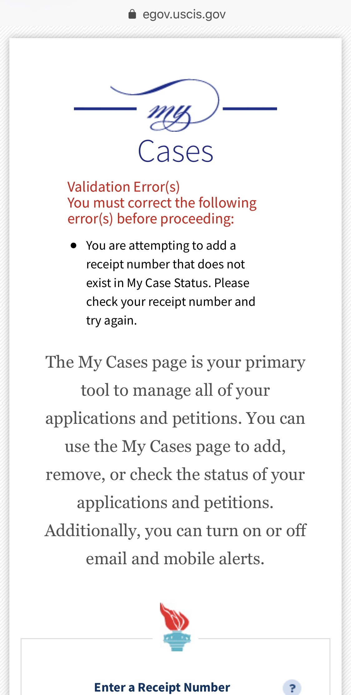 It didn’t occur to me until earlier that I should log back on to USCIS and add it to track the case. But then I got the below message...... Is it just taking time, or there’s something wrong!? Has anyone else had this happened to them??