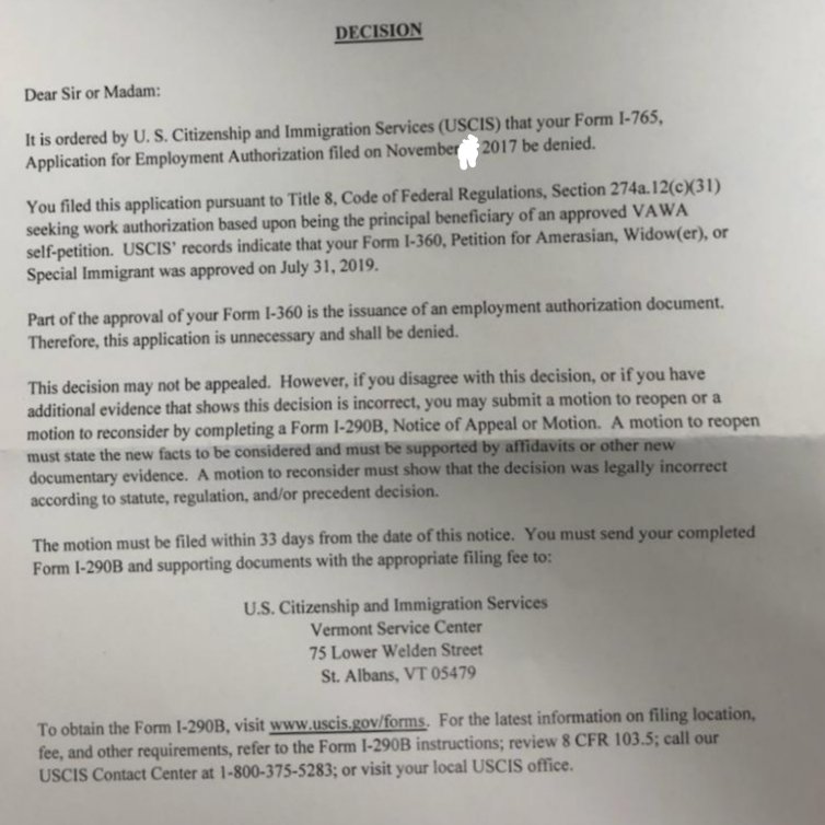 I got this decision letter from UCIS that my 765 is denied because 360 is approved. please I need your advice here. @sandranj