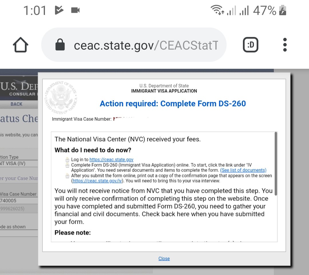 We have already paid both AOS and IV fees the other day (we know it's only been a few days) and today we got this notification when logging in "Action Required Complete Form DS 260". However, our payment in the Home Summary page still shows "In Process" and not "paid", so we couldnt access the form.