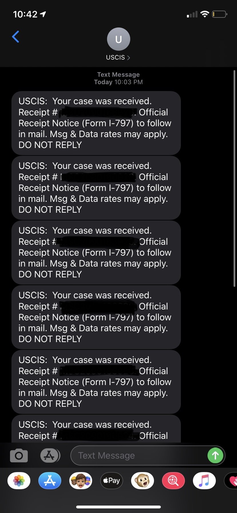 Whoa, exactly the same as me except mine arrived late at night on 10/14. We only got one text message for the I-485, but after checking my email’s spam folder, I got a different email for all three cases. Now just waiting on hard copy NOA1s and the biometrics appointment!