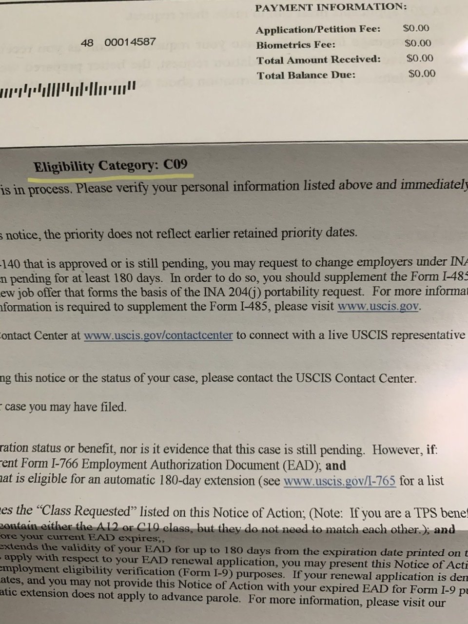 I just realized I submitted my application under category a6. Got the NOA1 today and they automatically changed it to c9. Don’t worry, I’m sure you’ll be fine too.