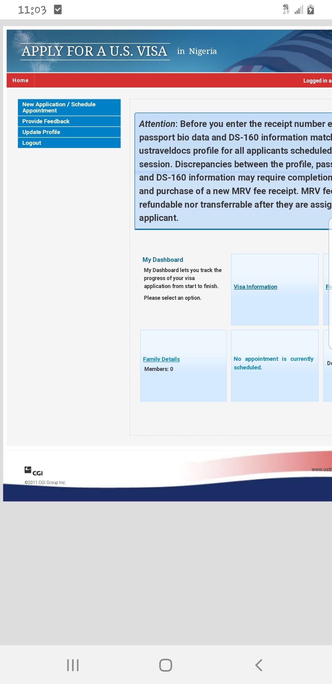 1021810339_Screenshot_20200204-110331_SamsungInternet.thumb.jpg.d4be9766c07e4735d286867a7bfc6c86.jpglook at the left hand side of the screen shot,you'll see the update profile sign, click on it and update your profile and save it...then come to the home page where you clicked on the update profile, this time you'll go little down to Visa information, click on it and input your Visa category there and then save it...that's all,they've gotten your info which will make them inform you when your Visa is available for pick up,forget about the appointment scheduling cuz it does not apply to you...I hope this helps