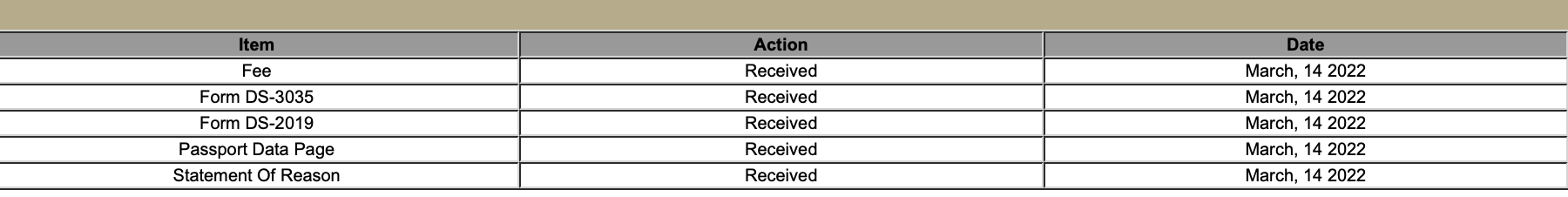 Hi, yes, surprisingly all docs are showing as received. Except the Passport page, all docs receive date are shown as February 17th. I was honestly only expecting something to show up online next month, based on the processing flow described by others. Was your NOS submitted online by your consulate or over email? Mine was submitted over email.
