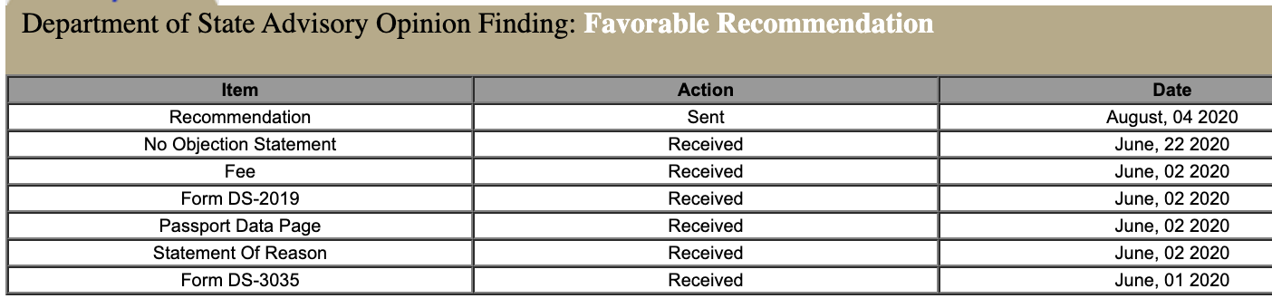 My J1 will be expiring on May 31, 2020 and I am getting worried. Any ideas how to confirm about whether DoS has received the NOS or not?
