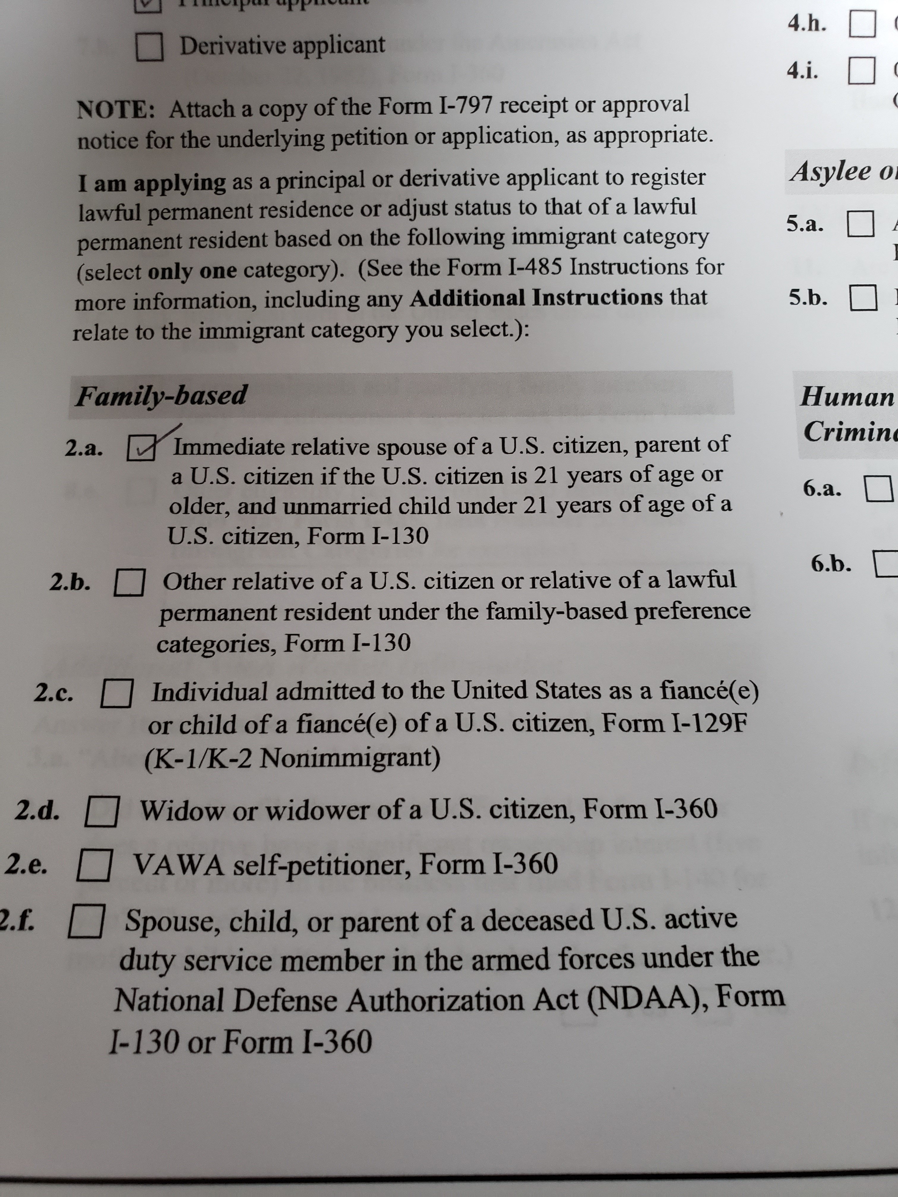 Thank you will add the form and resubmit. could you advise which category i fall under. I am a permanent resident sponsoring my wife.
