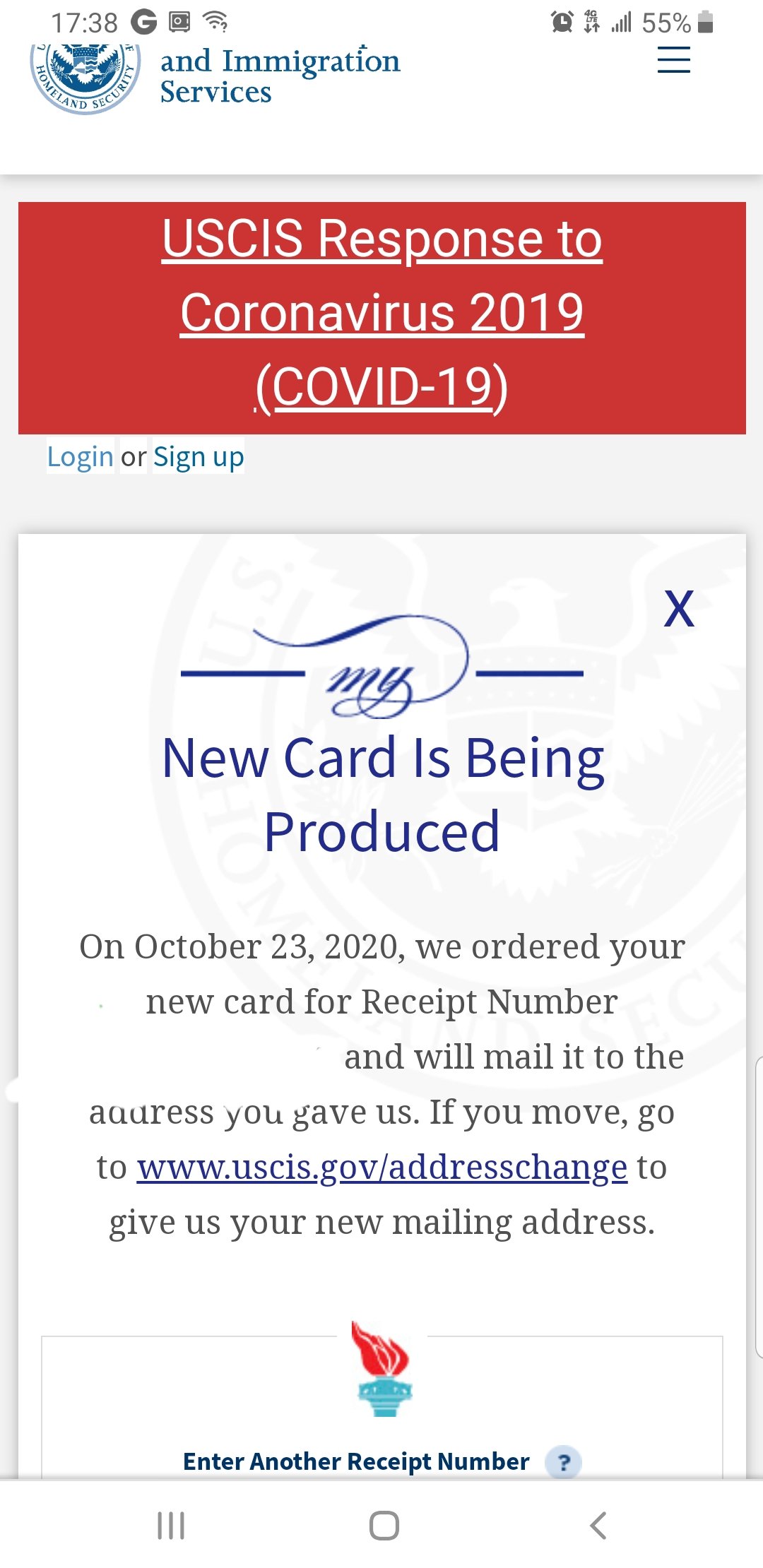 New card being produce i360 receipt October 23rd 2020.