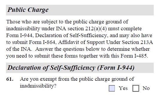 There is a question about Public Charge/Self-sufficiency: (see inserted image)