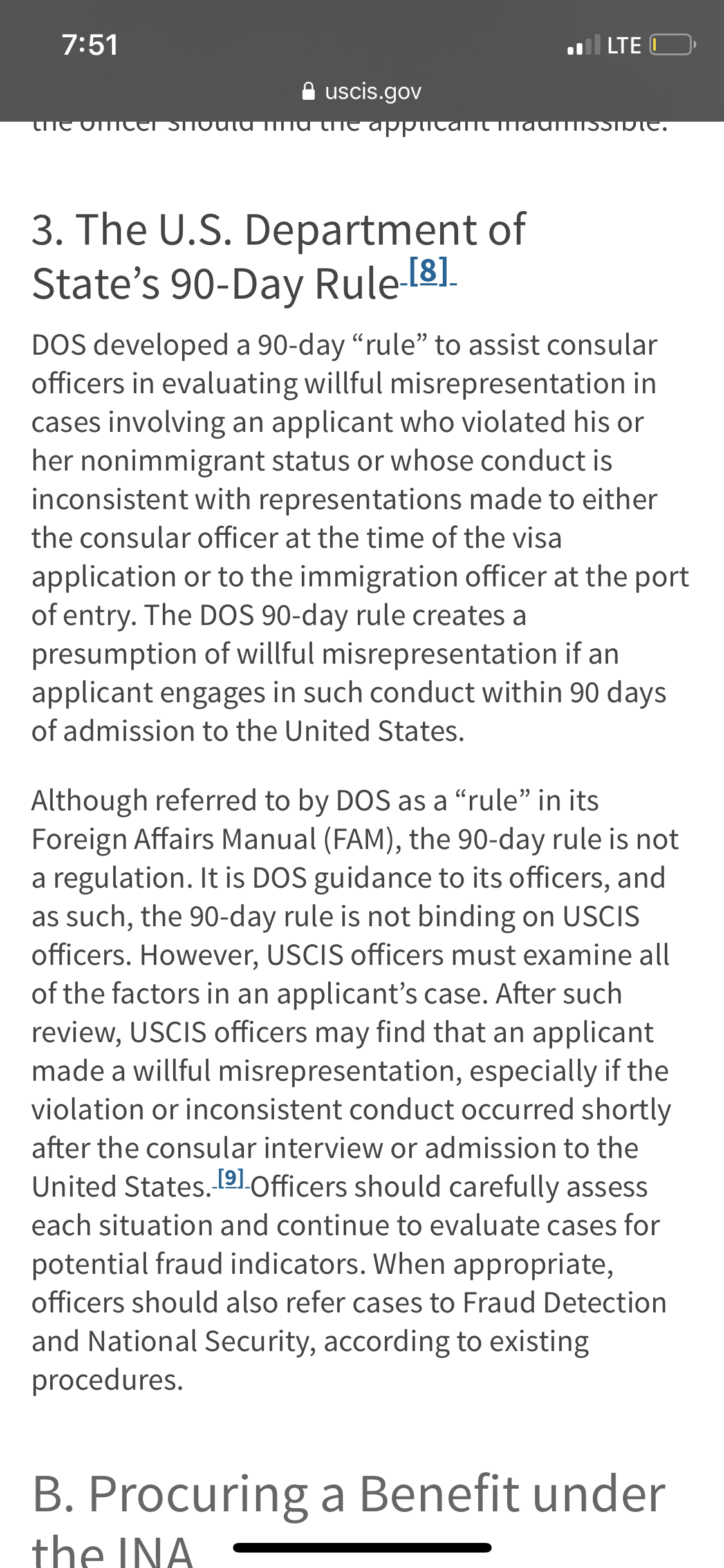 Maybe I’m over thinking it, I read that there is a guideline for officers To presume misrepresentation when certain things happen within 90 days