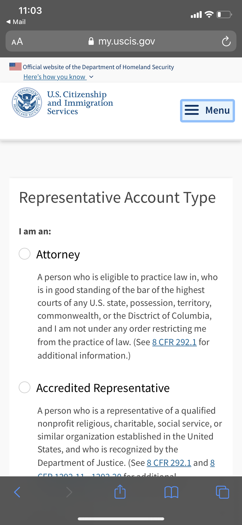 Hi I created account to Cheack my case but this is coming in my way am neither attorney oR representative