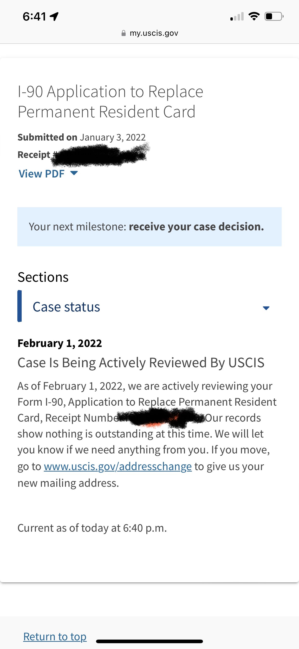 December 21, 2023:  Production of new Green Card ordered - will be seeing USCIS again every 10 years for renewal