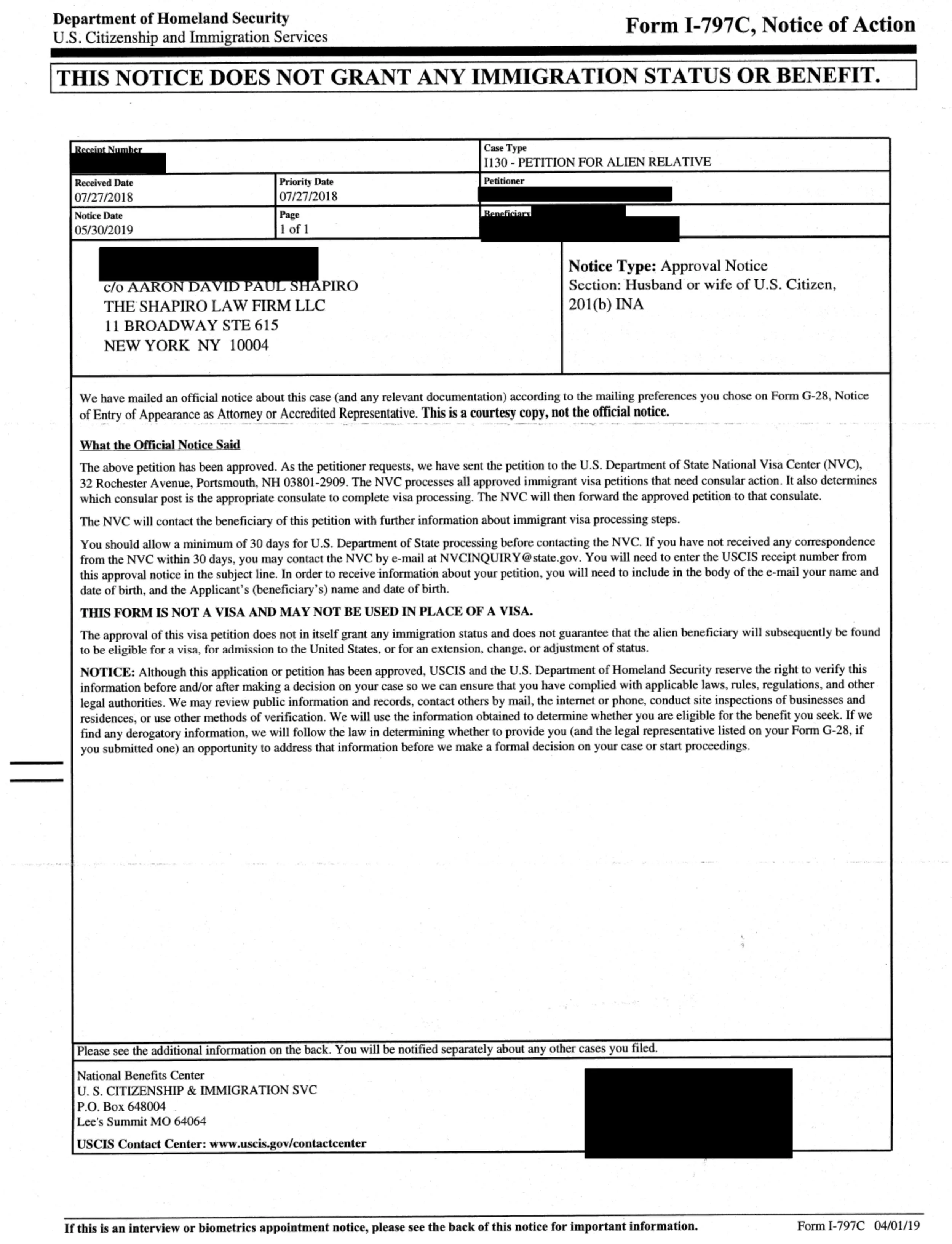 Form+I-797C,+Notice+of+Action.+I-130+App