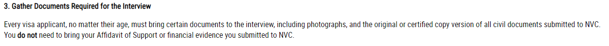 Ok, this is the official answer from the NVC website: https://travel.state.gov/content/travel/en/us-visas/immigrate/the-immigrant-visa-process/step-10-prepare-for-the-interview.html
