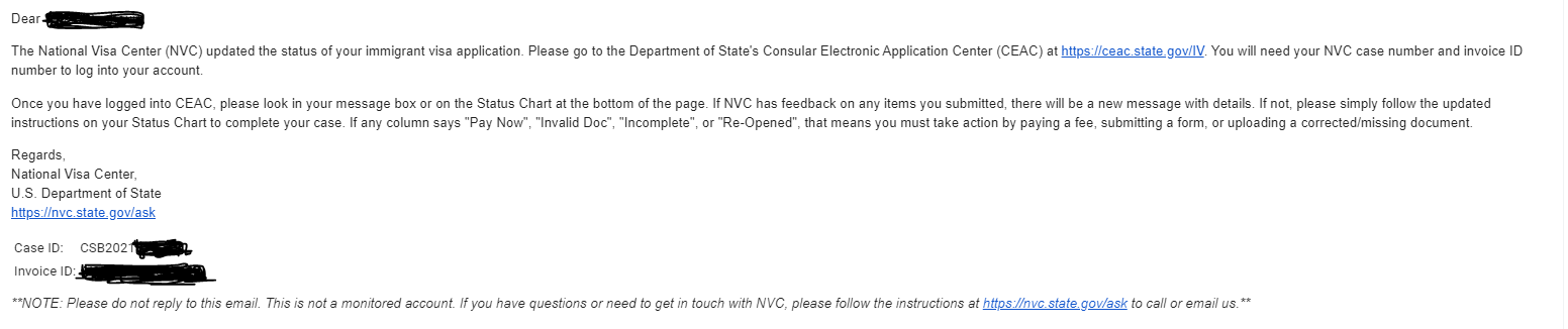 • 08 Jul 2021: NVC - Submit IV + AOS Documents