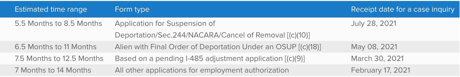 Congrats to everyone whose cases are moving along! VisaJourney says my EAD and AP should be approved any day now, but I just checked the USCIS processing times and they are so long!