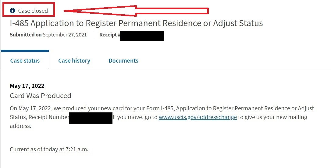 09/25/2021 - My wife received Form I-797C Notice of Action via USPS which included the online access code
