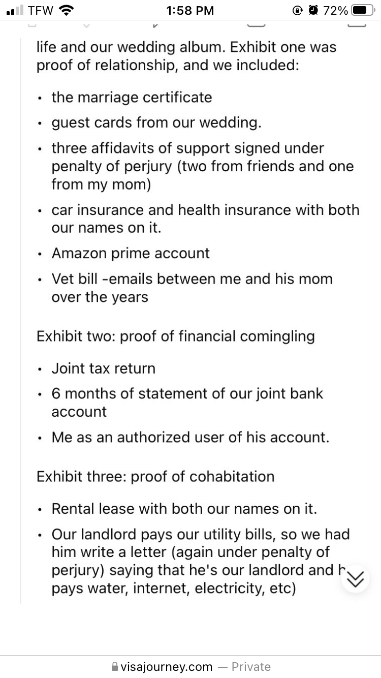 We were missing a current I-94.  And do you have joint bank account statements?  Any joint assets?