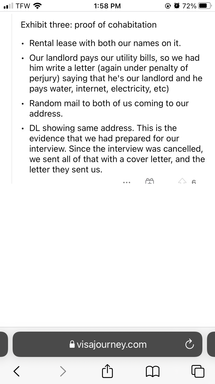Important Disclaimer: Please read carefully the Visajourney.com Terms of Service. If you do not agree to the Terms of Service you should not access or view any page (including this page) on VisaJourney.com. Answers and comments provided on Visajourney.com Forums are general information, and are not intended to substitute for informed professional medical, psychiatric, psychological, tax, legal, investment, accounting, or other professional advice. Visajourney.com does not endorse, and expressly disclaims liability for any product, manufacturer, distributor, service or service provider mentioned or any opinion expressed in answers or comments. VisaJourney.com does not condone immigration fraud in any way, shape or manner. VisaJourney.com recommends that if any member or user knows directly of someone involved in fraudulent or illegal activity, that they report such activity directly to the Department of Homeland Security, Immigration and Customs Enforcement. You can contact ICE via email at Immigration.Reply@dhs.gov or you can telephone ICE at 1-866-347-2423. All reported threads/posts containing reference to immigration fraud or illegal activities will be removed from this board. If you feel that you have found inappropriate content, please let us know by contacting us here with a url link to that content. Thank you.