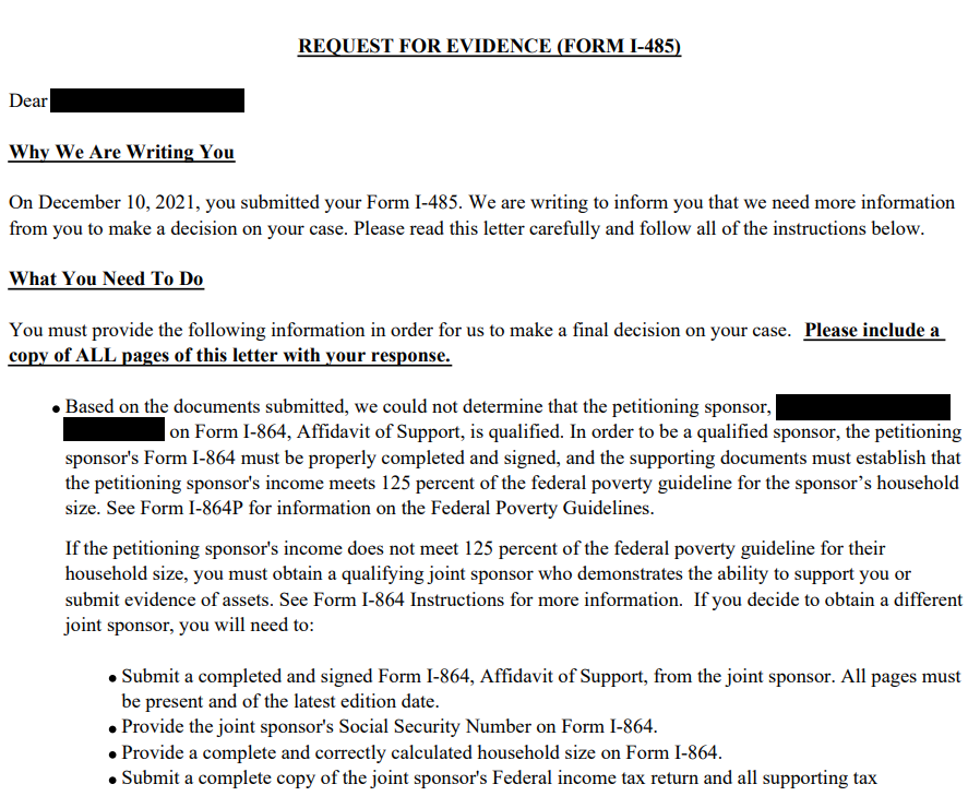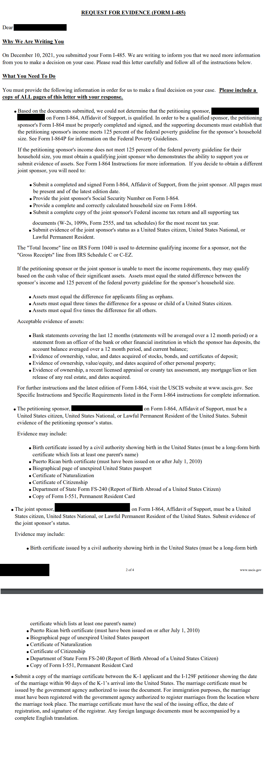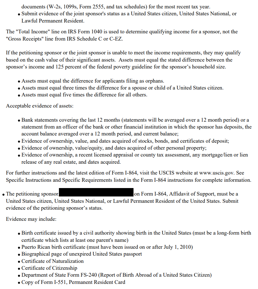 • Edit: I gather that the actual joint sponsor I-864 we submitted is fine, as there is no mention of the joint sponsor not qualifying.