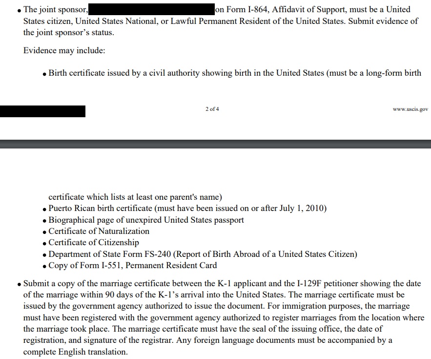 Hi all, just got an RFE and need some advice. I went to my USCIS online account and saw that they've uploaded some of the documents that they received from me in my original submission, but they have specifically not included either of the I-864 forms, the copy of our marriage certificate, the K-1 approval notice (I-797) or our joint sponsor's birth certificate, which I did submit. I know the text of the RFE is generic and the fact that they didn't upload it probably means I made some error on the I-864, but I'm not sure why the rest of the documents were excluded.