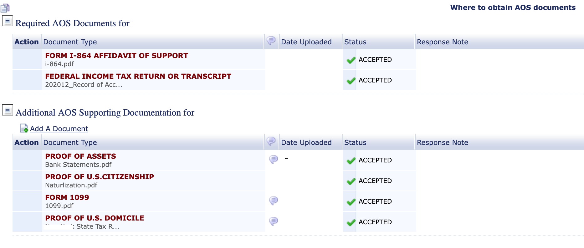 Got two FE messages in the inbox. One says Petitioner income might not qualify to sponsor this immigrant and the 2nd message says need Evidence of income for petitioner. I am not sure where to upload the income documents because everything says accepted. A little background, I am self employed so I get 1099's. I uploaded a couple of 1099's(under the 1099 form tab) with the initial submission. Do I just go ahead and upload everything including the 1099G ( for unemployment). I am attaching the screenshot of things I uploaded for AOS. Not sure how else to prove my income. I also submitted 6 months bank statements in order to qualify with assets 3x (CR1) the diff of total income for 2020, but I guess they didn't like that either. How would I prove income and where and under what pan to upload these docs?