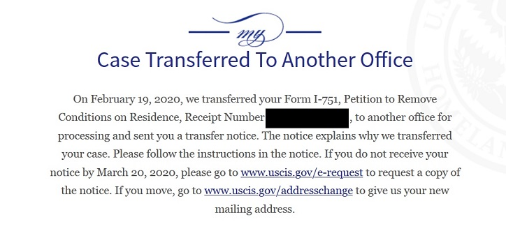 Just got an e-mail update that my case was transferred to another office (originally EAC). No idea why and I'm wondering if the letter will tell me more and where it was transferred to. This is the first action I have had on my case since doing biometrics in June 2019.