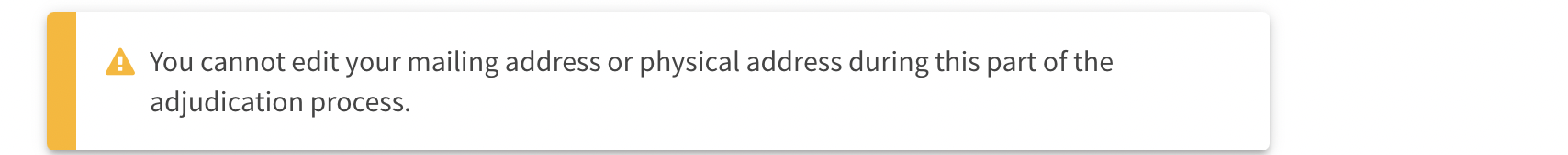 "You cannot edit your mailing address or physical address during this part of the adjudication process."