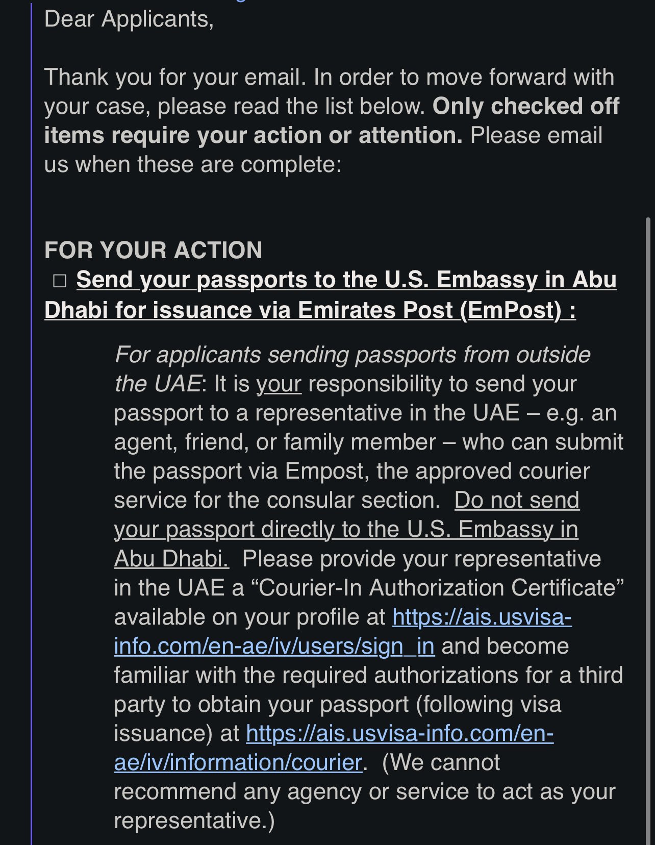 Many companies in the Middle East have a department that handles these kinds of things for their foreign employees! Language barrier is one huge issue! It is just not bi-lingual. The local language is Arabic, then US embassy communication is in English and then the language of the foreign employee plus the language skills of the employee that works in the travel department! And in 2004 the use of translating software and computer use was very limited! I am just suggesting a scenario! 😀