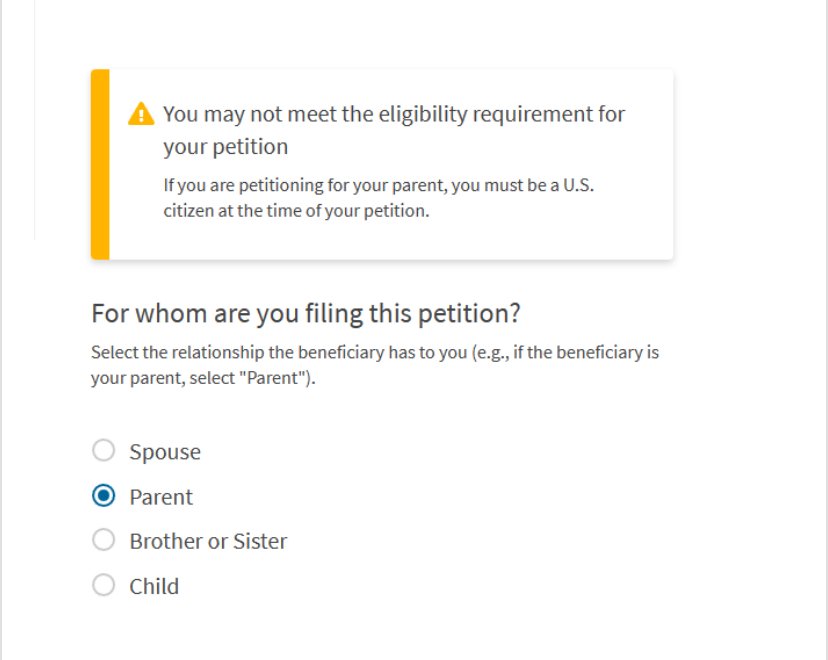 This is the error I got when I was applying I-130 for parent.