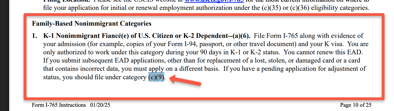 I-765, #24: K-1 for the husband, K-2 for the stepdaughter.