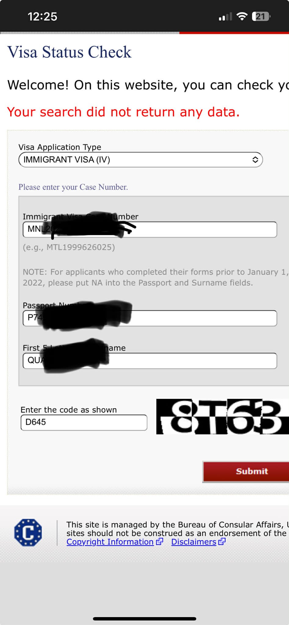Hoping you guys can please help me with a question.My fiance Had her interview on Dec23, and the consulate told her she was approved. I know that doesn't mean much. Until it is shown on the case status check as approved. But when ever i try to check under non immigrant visa and fill in all the options it tells me " your search did not return any data" But if i only fill in the embassy and her ds-160 number then put NA for passport and surname. it says no status. I have talked to a few other people that had interviews on the same day and they already got their visa showing "issued". So am i doing something wrong? Is it a glitch? maybe behind cause of the holidays? Any help you can offer will be greatly appreciated. Thank you.
