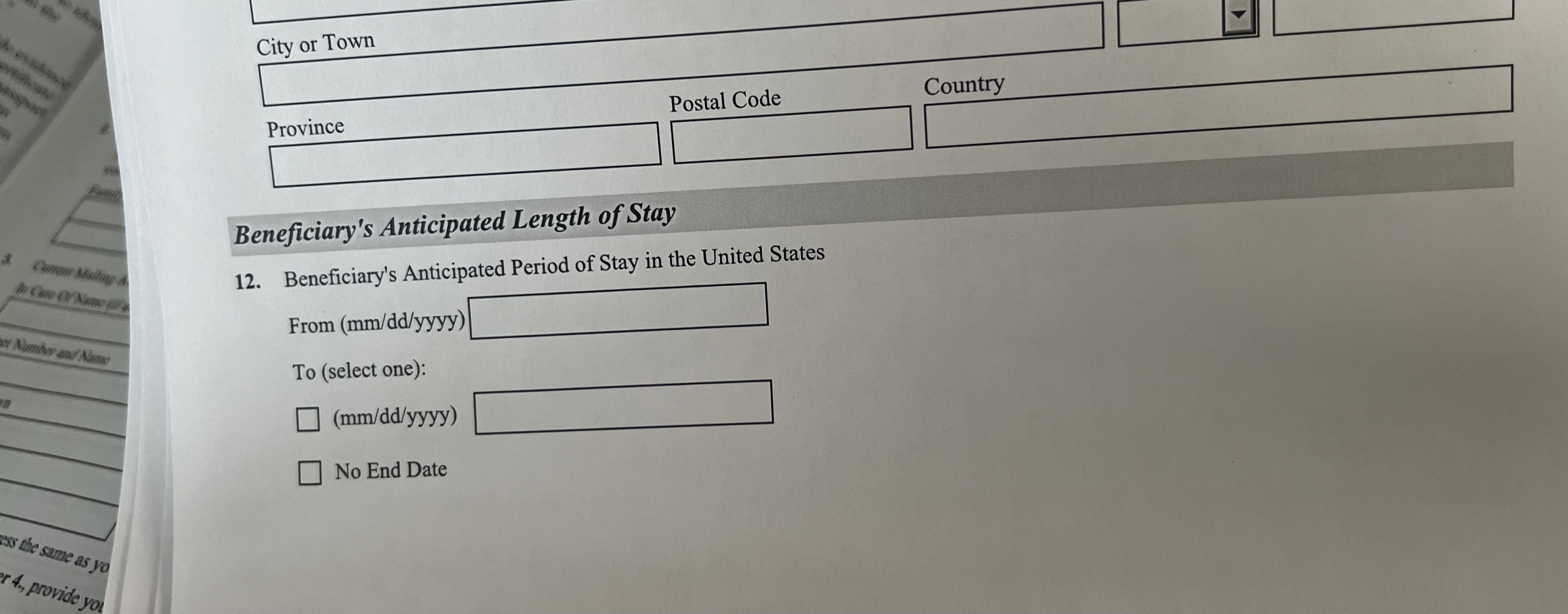 At the question 12 - Beneficiary s Anticipated Period of stay in The U.S.