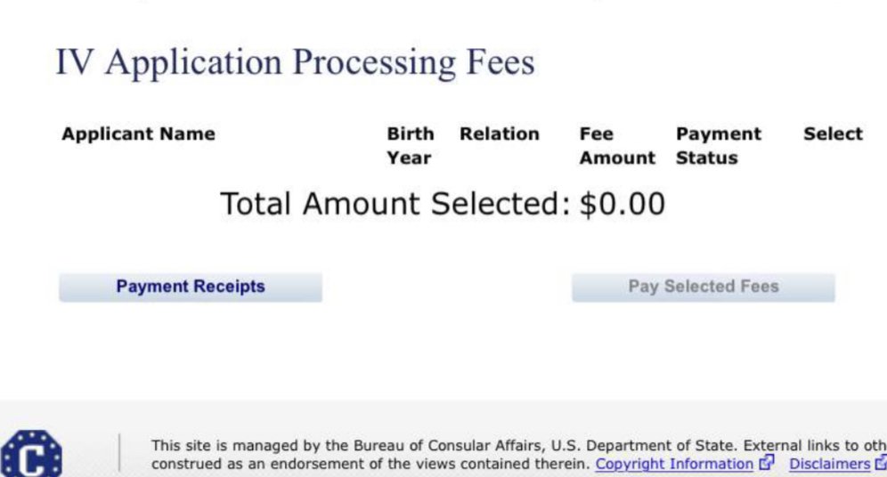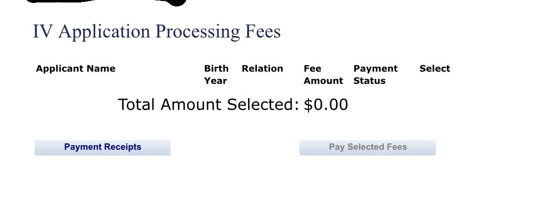Good Day! I want to ask for help regarding the status of my processing fee of IV FEE. Since i paid already the AFFIDAVIT OF SUPPORT (AOS) but the IV APPLICATION PROCESSING FEE could not go through since the amount of it won't appear as I'm about to pay. See the attachment photo please . KINDLY HELP ME 🥺🙏