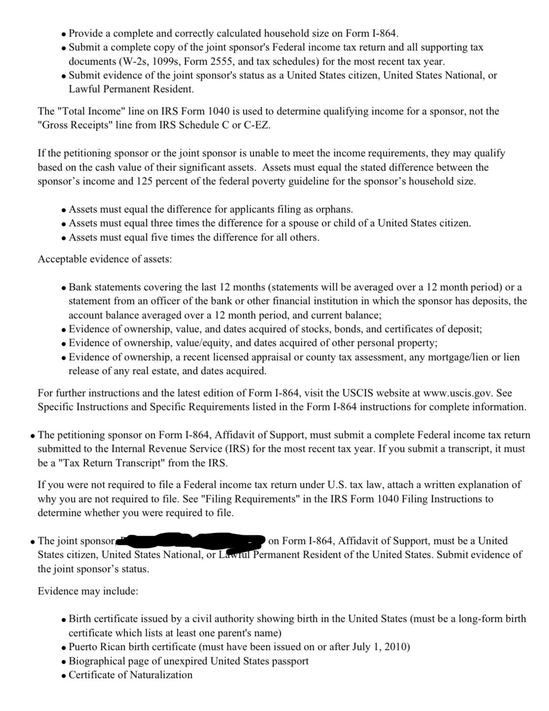 From what I can gather, they're asking for joint sponsors proof of citizenship and my spouse's tax exemption letter, am I missing anything else?
